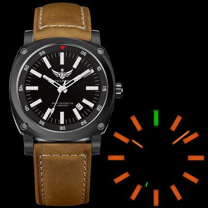 2分鐘前野狼手表男H3自發光全自動機械表 - 幻影黑-啡色皮帶款-橙光款