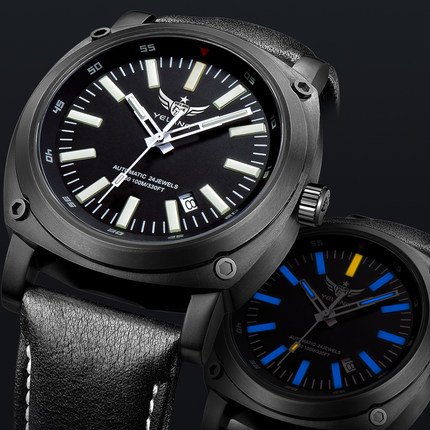 5分鐘前野狼手表男H3自發光全自動機械表 - 幻影黑-黑色皮帶款-藍光